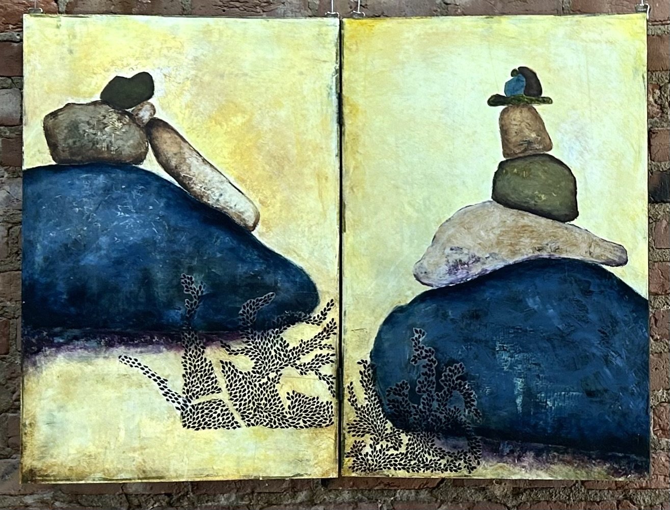 Remembrances and Charms, pages 4 and 5, oils and mixed media, 40"x30”